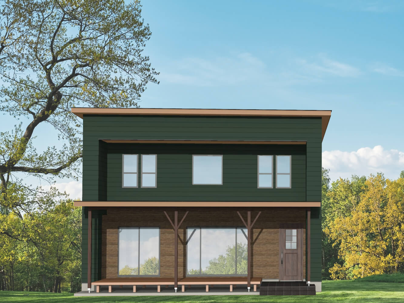 モスグリーン×木目の外壁が格好いい、落ち着いたテイストのこちらのお住まい。