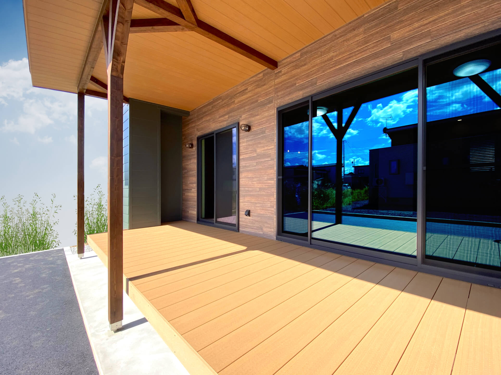 ■リビングから続く大きなウッドデッキ
