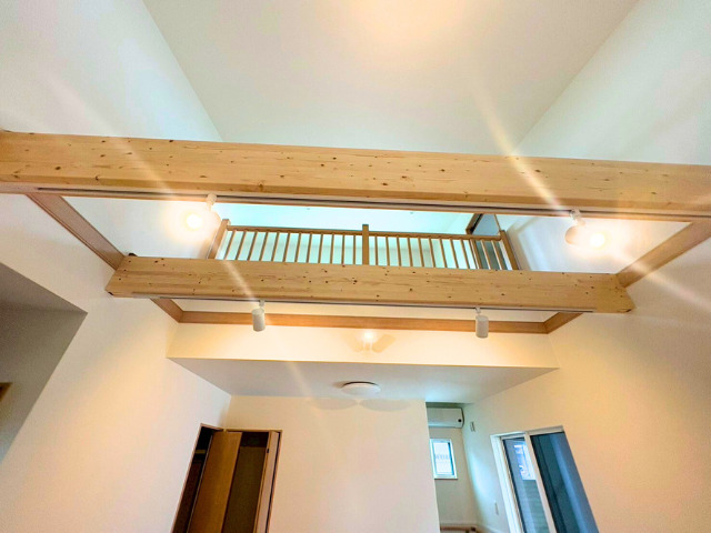 吹き抜けの上部には、光の差し込むホールと納戸が・・・