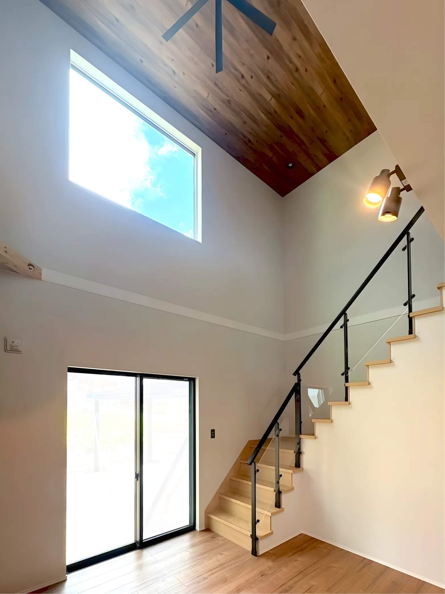 明るい日差しが降り注ぐ、吹き抜けの窓。