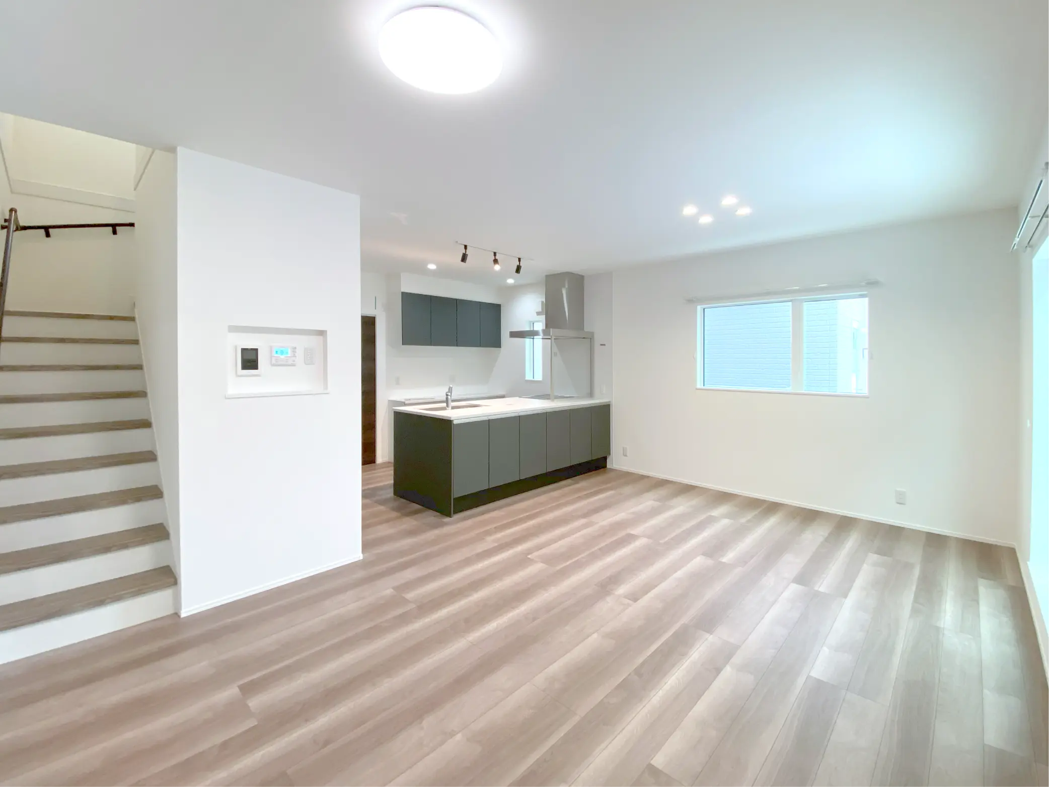 フルフラットキッチンを採用し、空間全体を見渡せる開放的なレイアウトに。