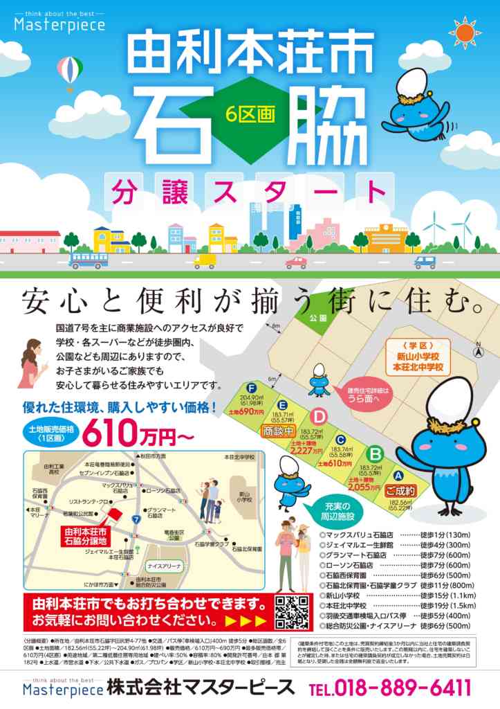 11/6発行 ポスティングチラシに由利本荘市石脇の【6区画】の分譲地について掲載しています。