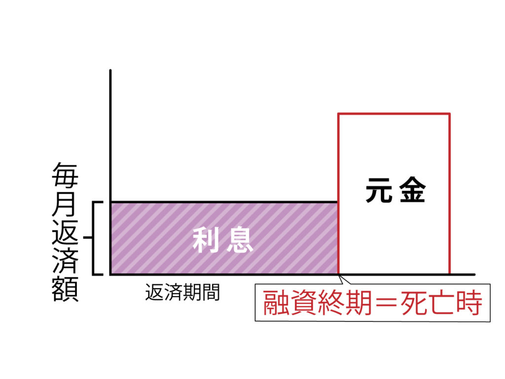 一方【リ・バース60】の場合、返済期間中の「返済額」=「利息」のみで、お客様が万が一亡くなられた時点で返済期間終了となります。