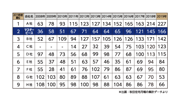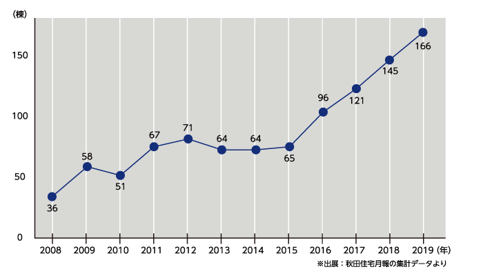 当社の秋田県内での住宅着工棟数
